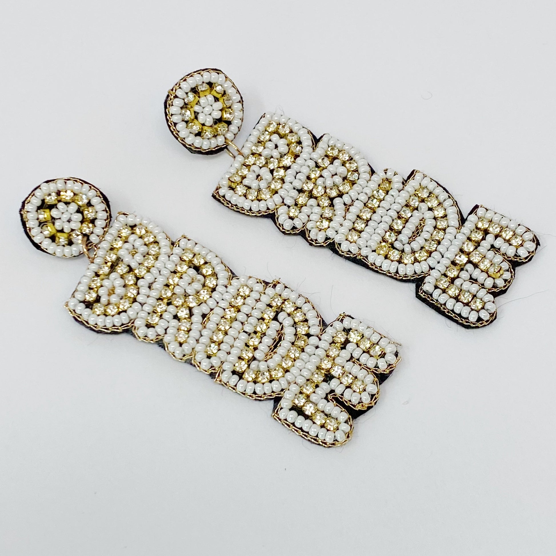 Calling all brides! These beaded drop "BRIDE" earrings are perfect for bachelorette trips, rehearsal dinners, or honeymoons!