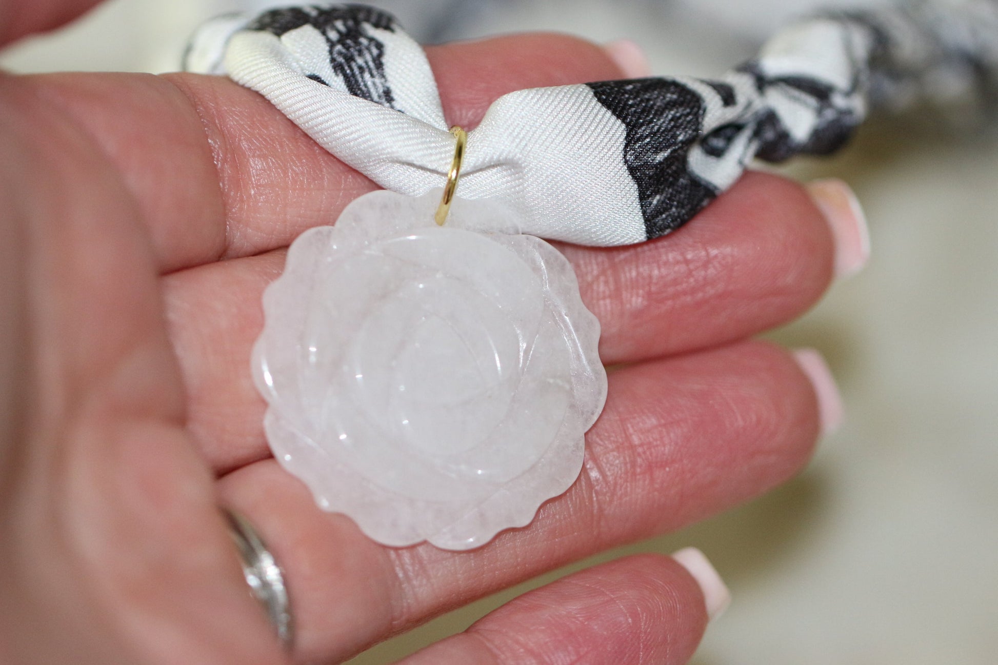 Make a soft yet striking statement with the Fifth Avenue Bloom scarf necklace. This black-and-white cityscape scarf is adorned with a carved white rose pendant—elegant, feminine, and undeniably chic. Inspired by the timeless florals of New York’s iconic Fifth Avenue, this piece brings sophistication to any outfit.