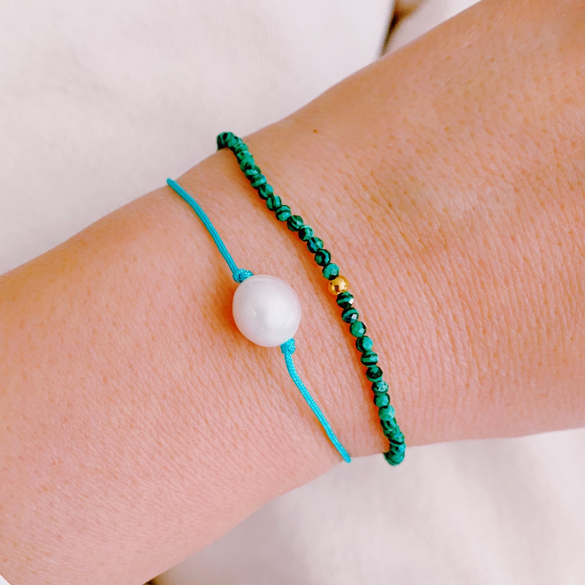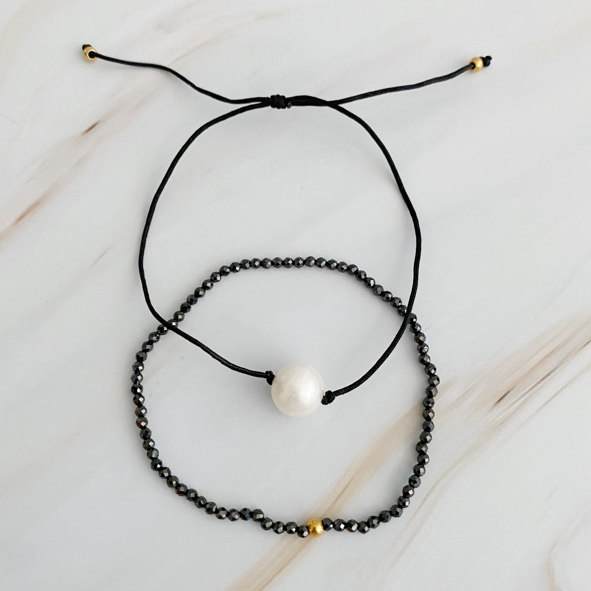 This Genuine Pearl Color Dream Bracelet Set features two exquisite and versatile bracelets made of a high-grade genuine freshwater pearl with colored thread and dainty sparkly glass beads. With subtle sparkles from glass beads, each piece is perfect for wearing alone or layering with other bracelets to create a unique look. A wonderful gift for birthday, Easter, graduation and more.