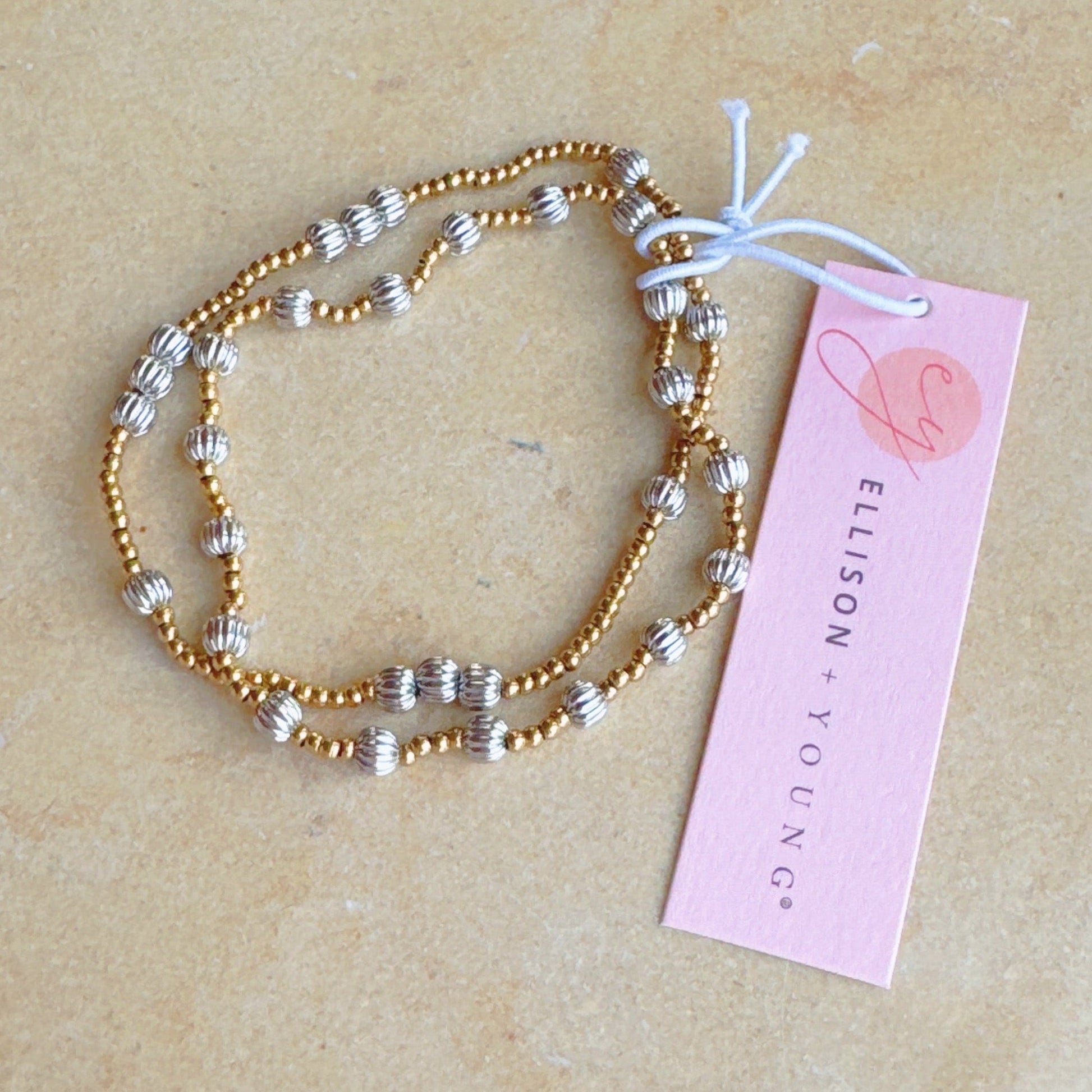 Add a touch of sophistication to your outfit with our modern and unique bracelet set of 2. The textured design adds a creative touch, making it perfect for any occasion. Effortlessly chic, these bracelets elevate your look whether worn alone or stacked.